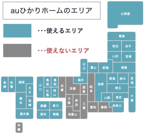 理由は、中部や近畿、沖縄はauひかり以外の回線事業者が管轄するためです。