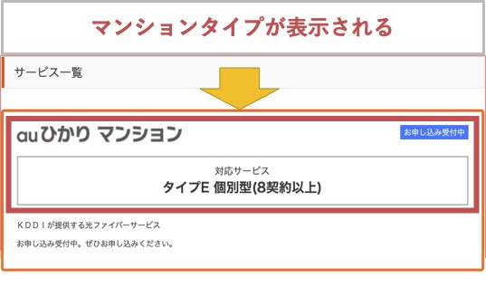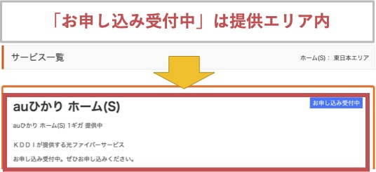 他にも、「auひかりホーム(S)」で「お申し込み受付中」なら、提供エリア内になります。