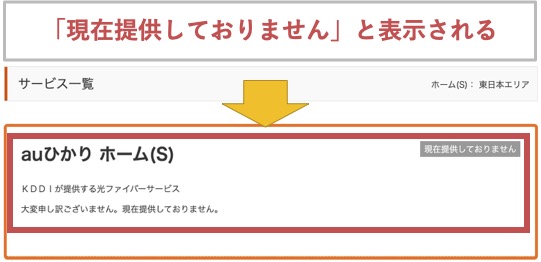 判定結果が、auひかりホーム(s)で「現在提供しておりません」と出た場合は利用できません。