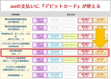 結果、auの支払いにデビットカードが使えると書かれていました。