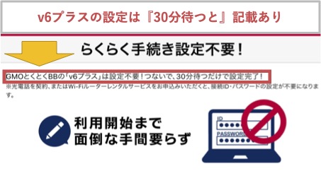 GMOとくとくBBの公式サイトでも、30分でv6プラスに繫がると書かれています。