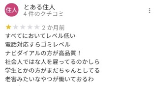 Google Mapの口コミは★1.3で低評価