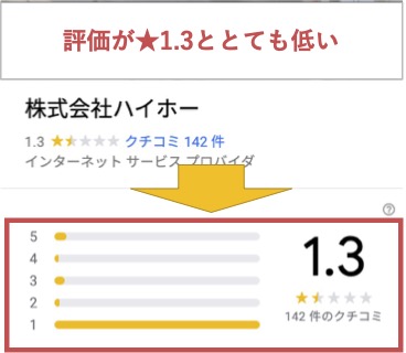 hi-hoはGoogle Mapの口コミにとにかく低評価が多くありました。
