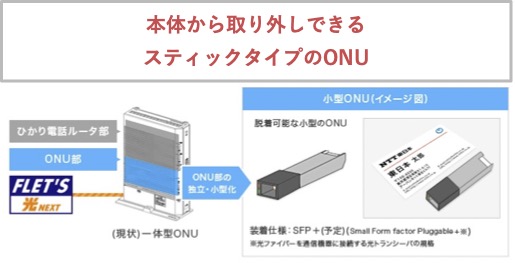 小型ONUとは、本体のONUから取り外しが可能な、スティックタイプのONUです。