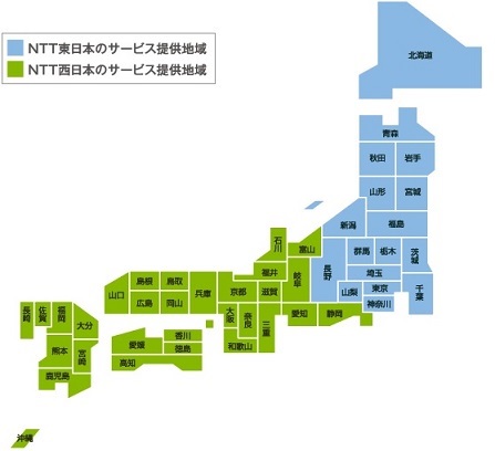 【NTT東日本とNTT西日本の提供地域】