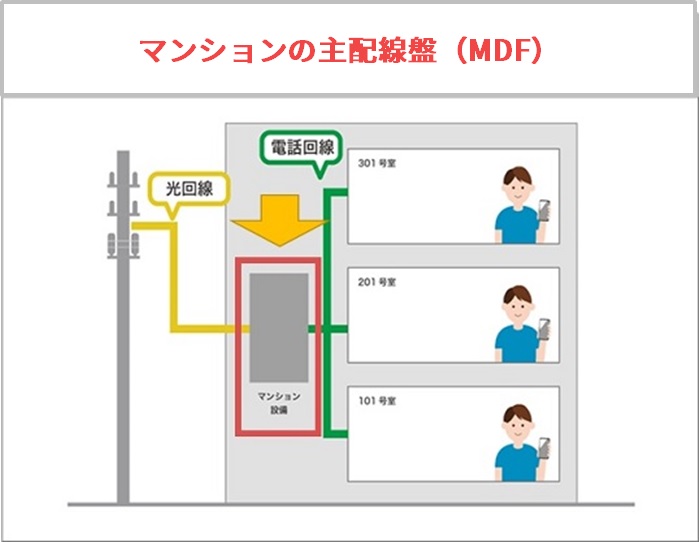 マンションに光回線が導入されていても、共有部の主配線盤(MDF)の空きがないと光回線が引き込めない事もがあります。