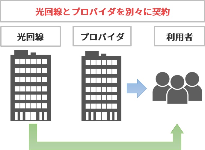 今までの光回線では、フレッツ光が光回線を提供し、別の会社がプロバイダを提供していました。