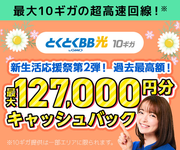 | あんしん乗り換えキャンペーン | 他社固定ブロードバンド回線または他社モバイルブロードバンド回線の違約金・撤去工事費を満額還元 |