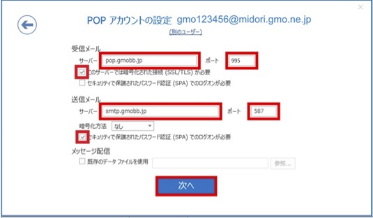 - 「POPアカウント設定」で必要情報を入力(※1)