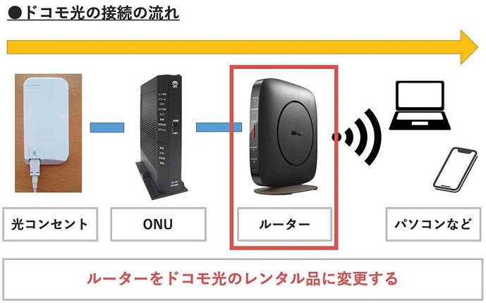 切り替えが終われば、ルーターをドコモ光のレンタル品に変更します。